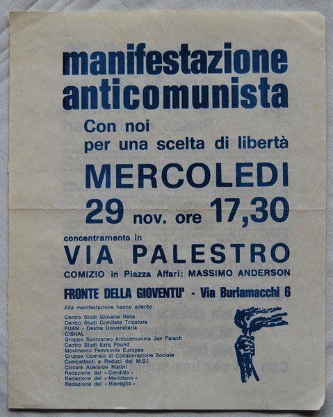 MANIFESTAZIONE ANTICOMUNISTA. CON NOI PER UNA SCELTA DI LIBERTA'.