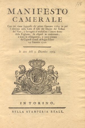 Manifesto Camerale riguardo l'intero diritto della Foglietta.3 dicembre 1763.