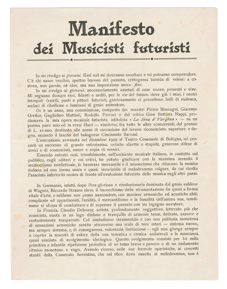 Manifesto dei Musicisti futuristi [PRIMA EDIZIONE, SECONDA TIRATURA]