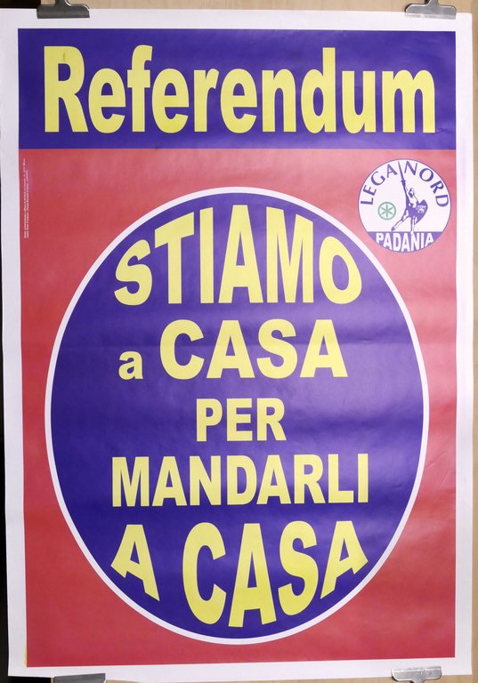 Manifesto Lega Nord - Referendum stare a casa per mandarli a casa - 2000 Dimensioni: 70 x 100 cm ca. Condizioni molto buone.