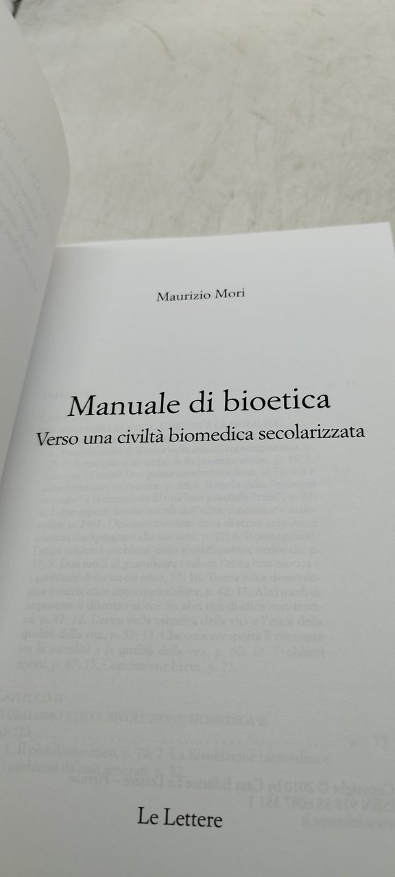maurizio mori manuale di bioetica verso una civiltà biomedica secolarizzata. , le lettere 2010 italiano, 440 °°brossura