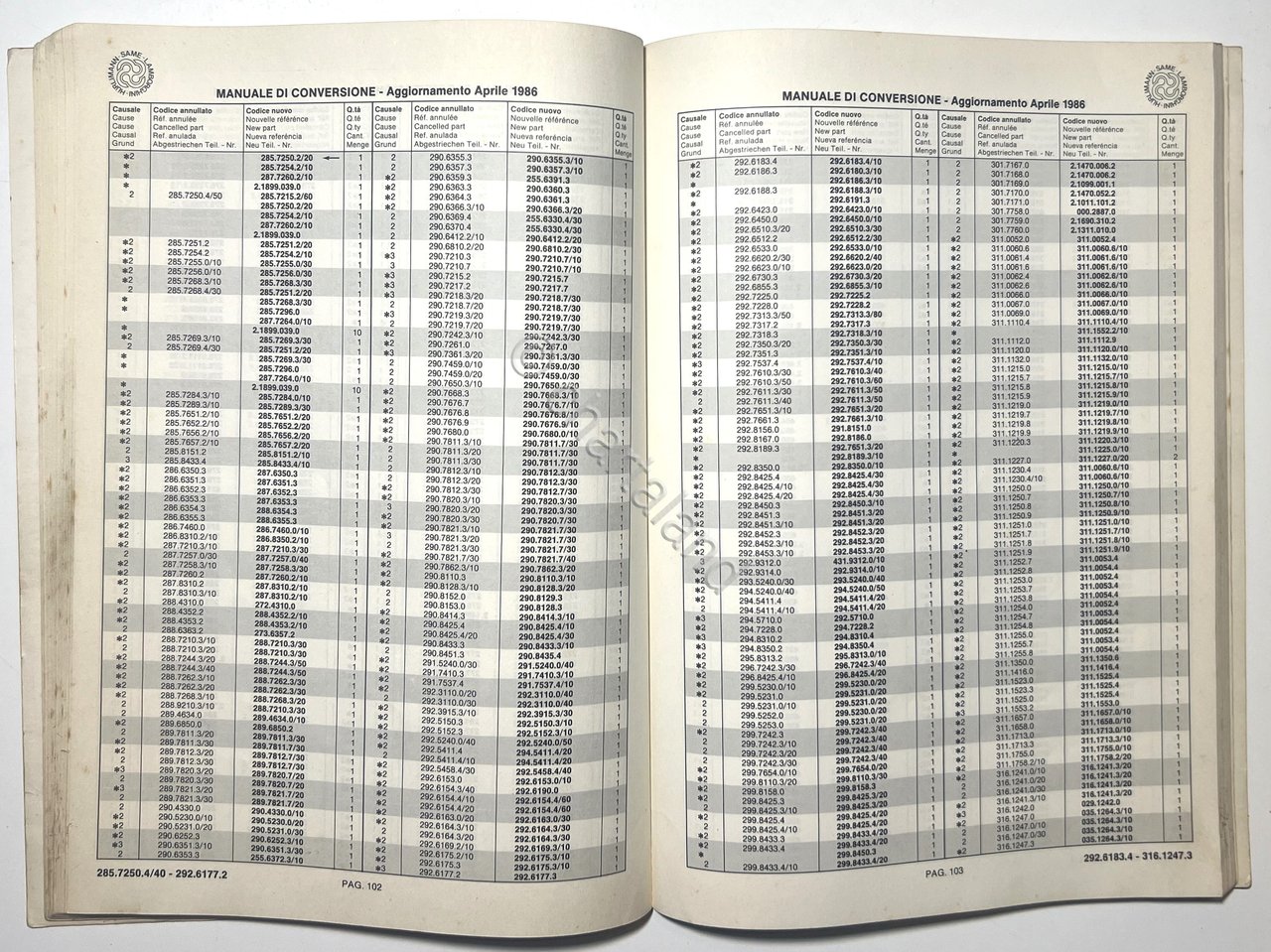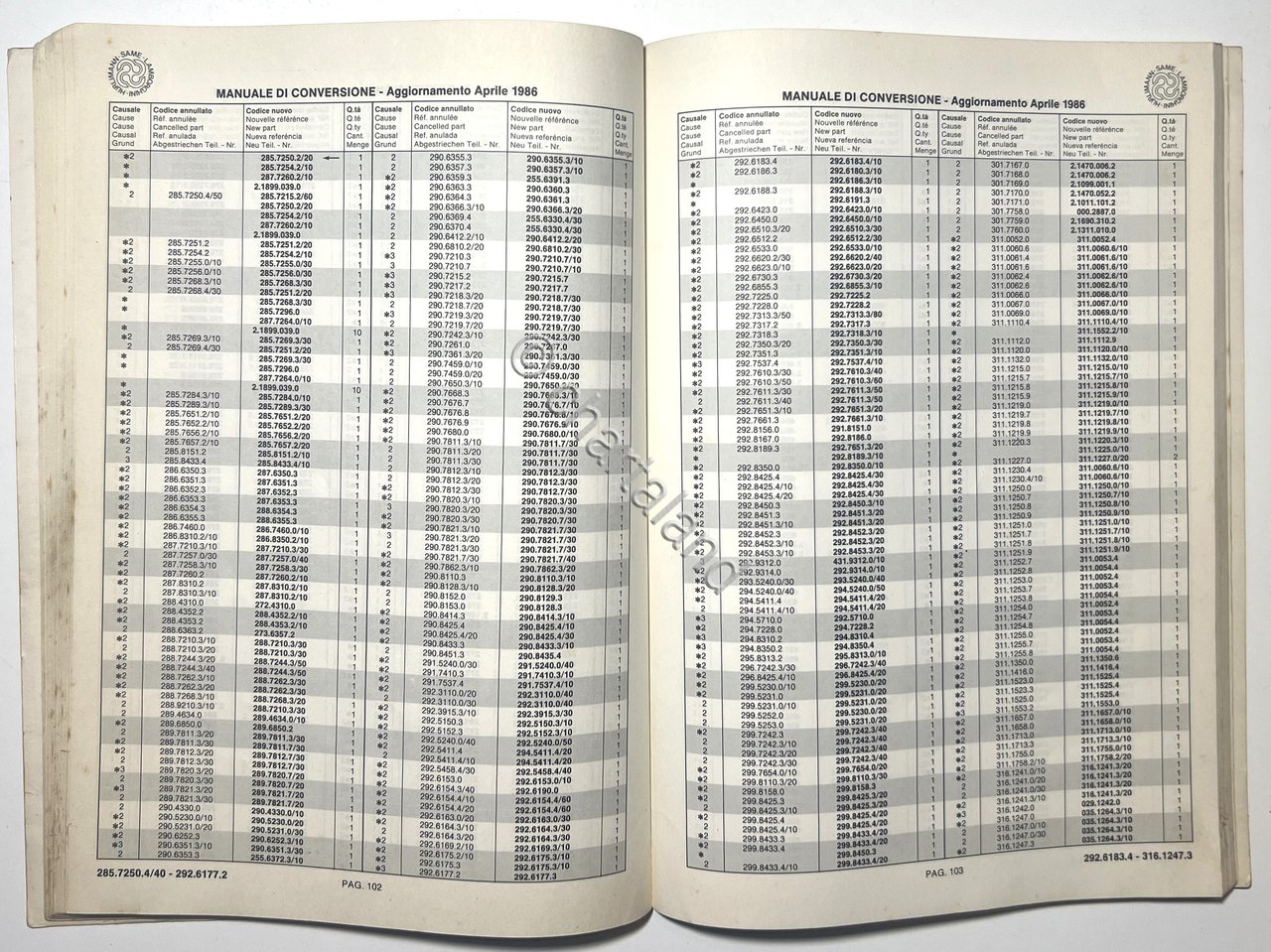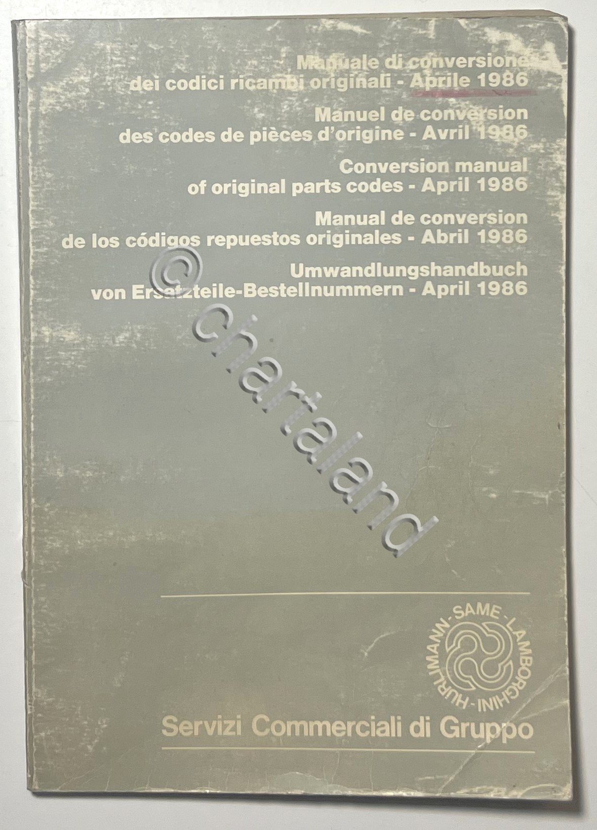 Manuale di Conversione dei Codici Ricambi Hurlimann SAME Lamborghini - ed. 1986