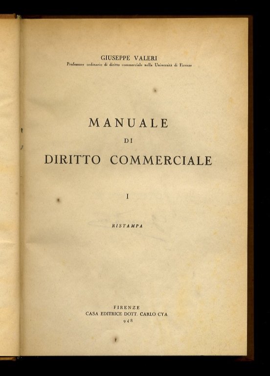 Manuale di diritto commerciale. Ristampa.