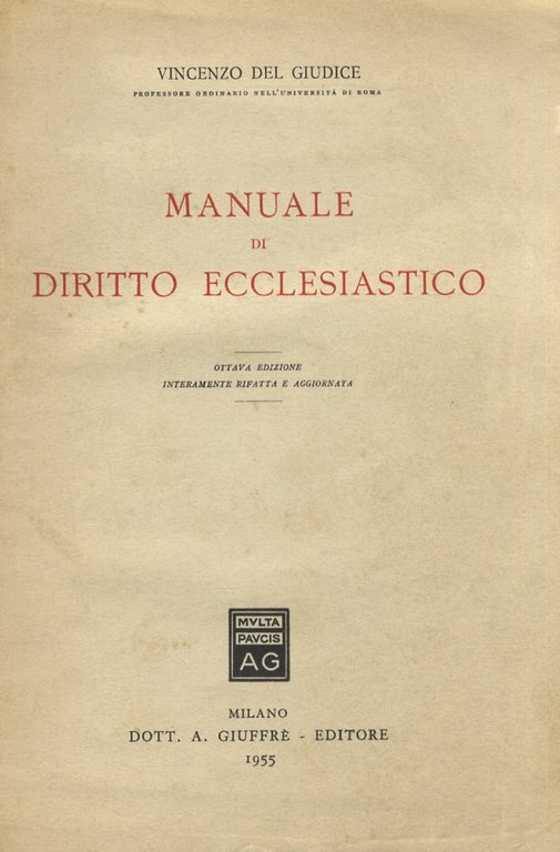 Manuale di Diritto Ecclesiastico. Ottava edizione interamente rifatta e aggiornata.