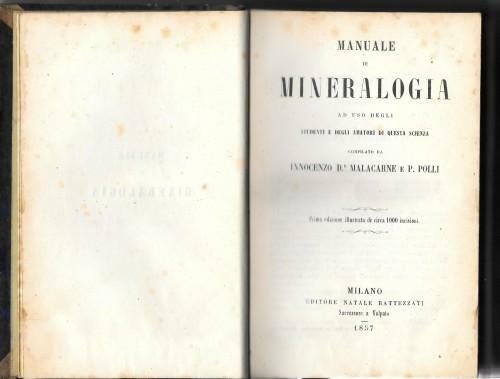 Manuale di Mineralogia ad uso degli studenti e degli amatori di questa scienza. Prima edizione illustrata di circa 1000 incisioni