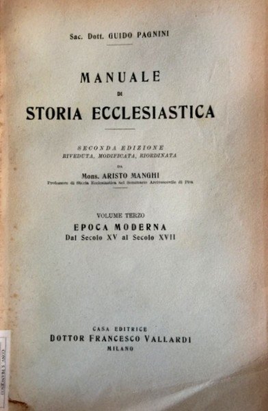 MANUALE DI STORIA ECCLESIASTICA. VOLUME 3, TERZO: EPOCA MODERNA: DAL SECOLO XV AL SECOLO XVII