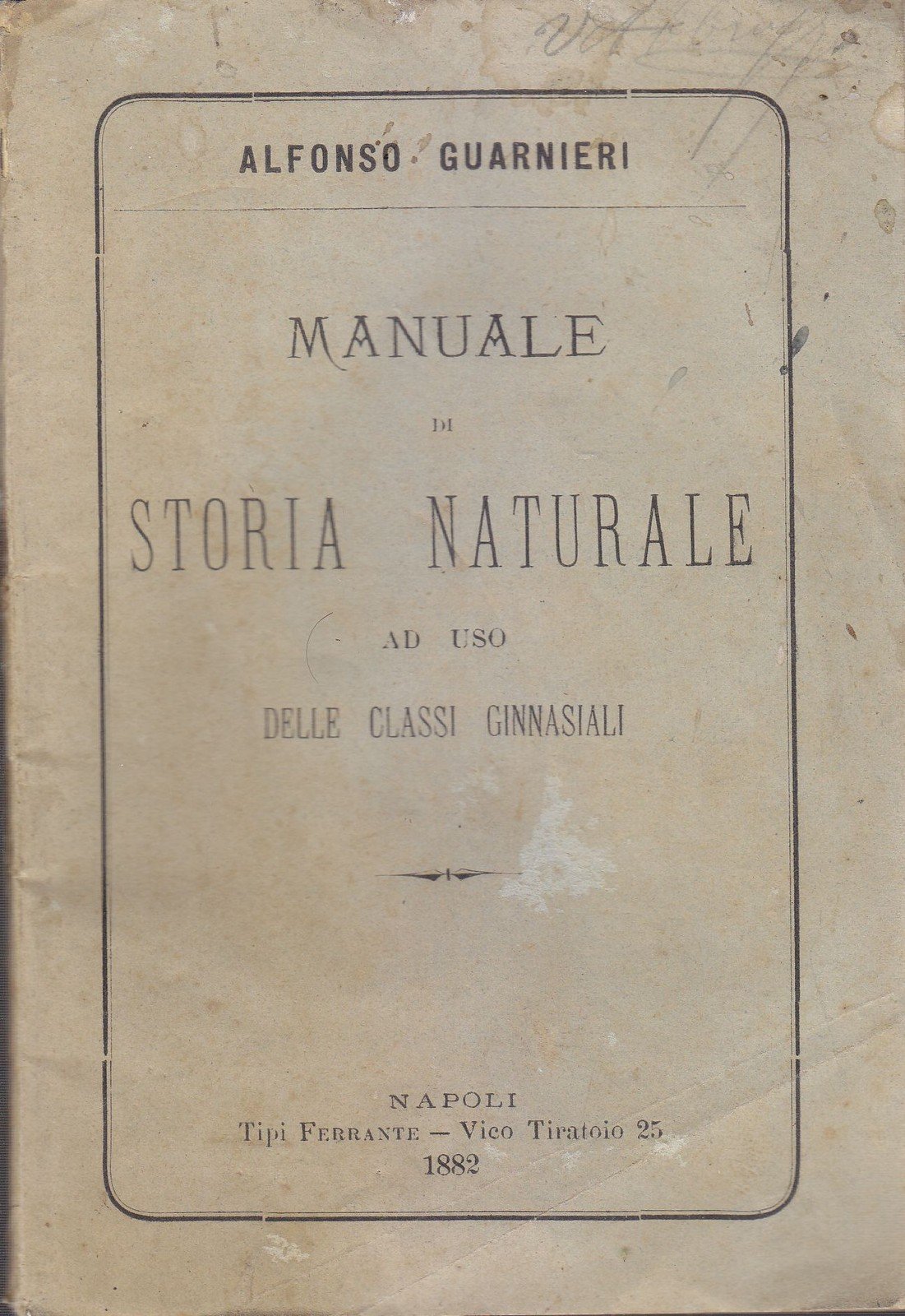MANUALE DI STORIA NATURALE AD USO CLASSI GINNASIALI di Alfonso Guarnieri. Tipi Ferrante Editore 1882. 63 Pagine.