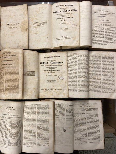 Manuale Forense ossia confronto fra il Codice Albertino, il Diritto Romano e la Legislazione anteriore con rapporto ed illustrazioni dei corrispondenti articoli del Codice Civile Francese ed Austriaco.