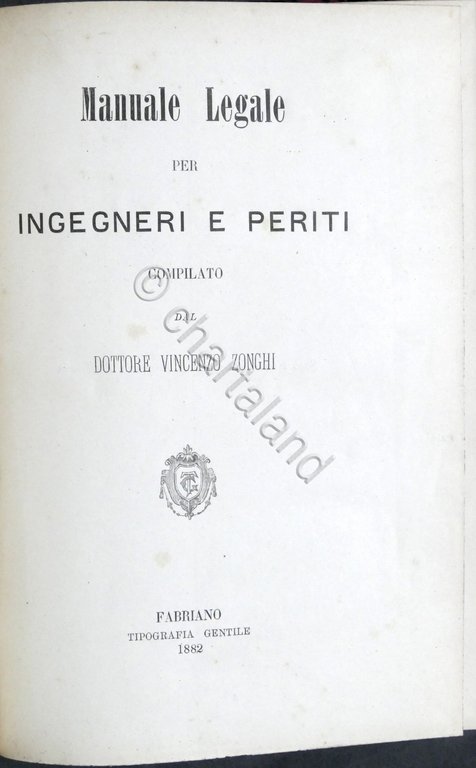 Manuale Legale per ingegneri e periti compilato dal dottore Vincenzo Zonghi 1882