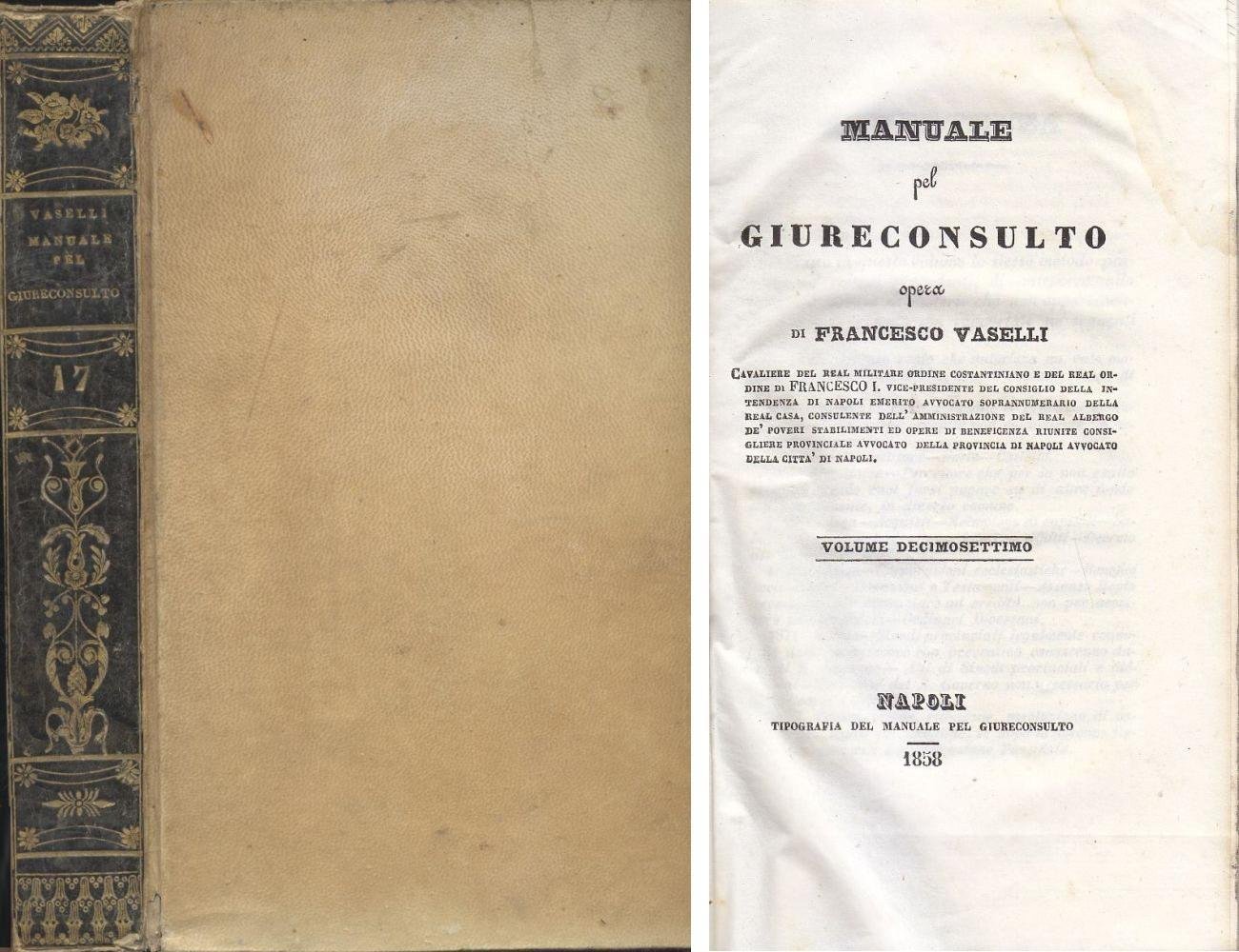 MANUALE PEL GIURECONSULTO Volume XVII di Francesco Vaselli 1858 libro antico