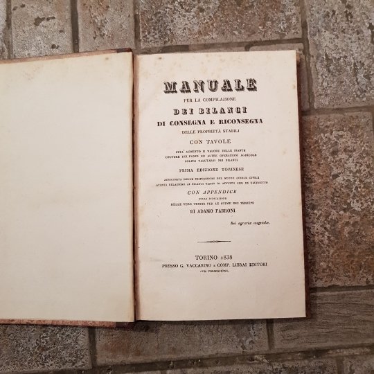 Manuale per la compilazione dei bilanci di consegna e riconsegna delle proprietà stabili con tavole sull'aumento e valore delle piante, colture dei fondi ed ltre operazioni agricole solite valutarsi nei bilanc. Prima edizione torinese arricchita delle disposizioni del nuovo Codice Civile aventi relazione ei bilanci tanto di affitto che di usufrutto. Con apendice sulla indicazione delle vere teorie per le stime dei terreni di Adamo Fabroni