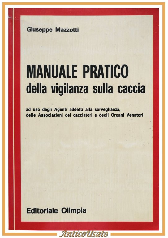 MANUALE PRATICO DELLA VIGILANZA SULLA CACCIA di Giuseppe Mazzotti 1979 Olimpia