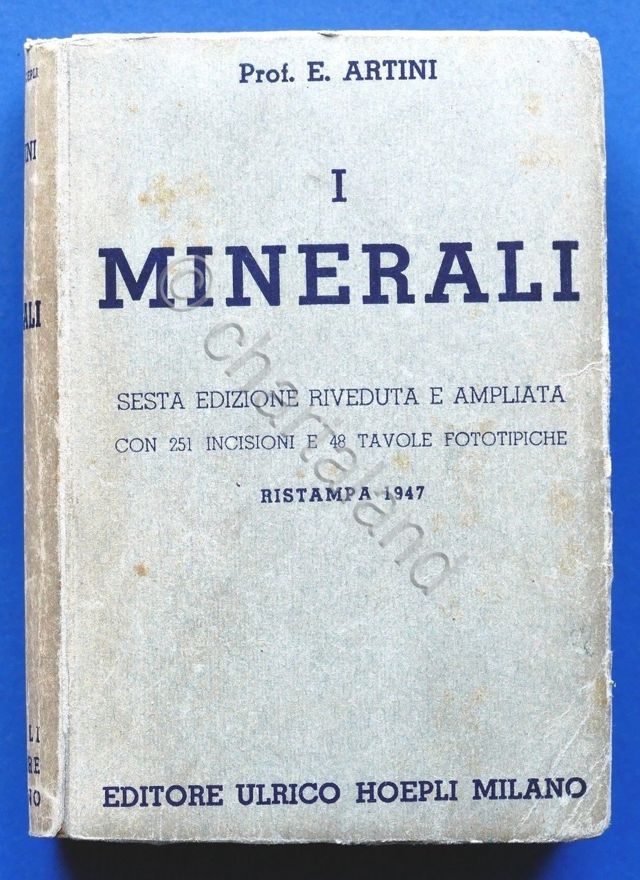 *** Manuali Hoepli - Prof. E. Artini - I Minerali - 6^ ed. 1941 Ristampa epoca 1947 (Rif. EMMEACCA Catalogo dei Manuali Hoepli dal 1875 al 1945 pag. 37 ) - pag. XVI + 577 con 48 tavole allegate in bianco nero. Per appassionati, studiosi e collezionisti