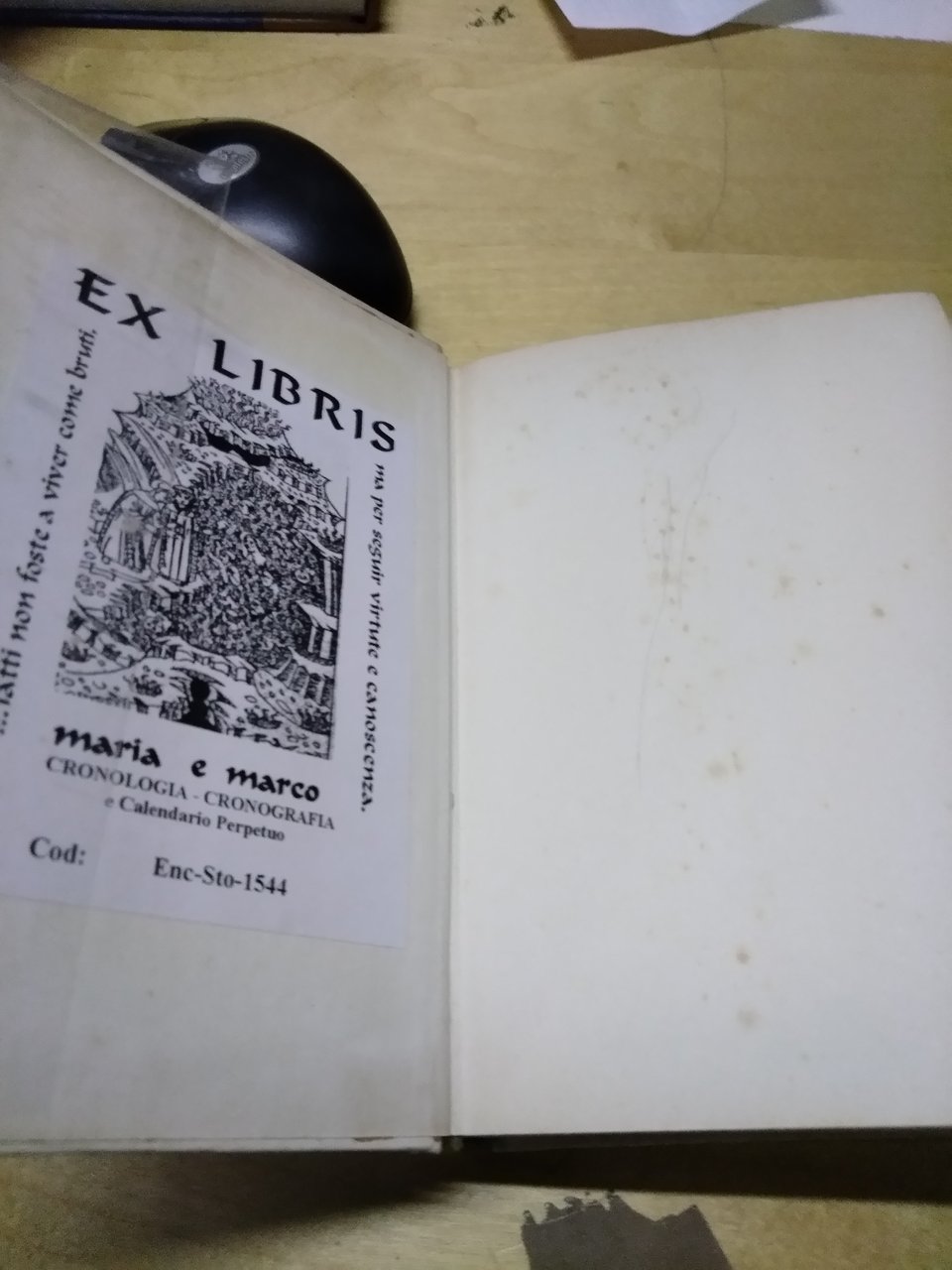 etichetta ex libris attaccata e segni a matita