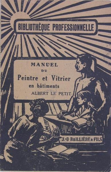 Editeur J. B. Baillière & fils, 1948. In/12 broché, couverture illustrée, 52 figures in-texte, 282 p. Technologie de la profession, exemples de travaux pratiques, vitrerie, dorure de bâtiment ou dorure à l’huile, marouflage, papiers peints, législation, usages.
