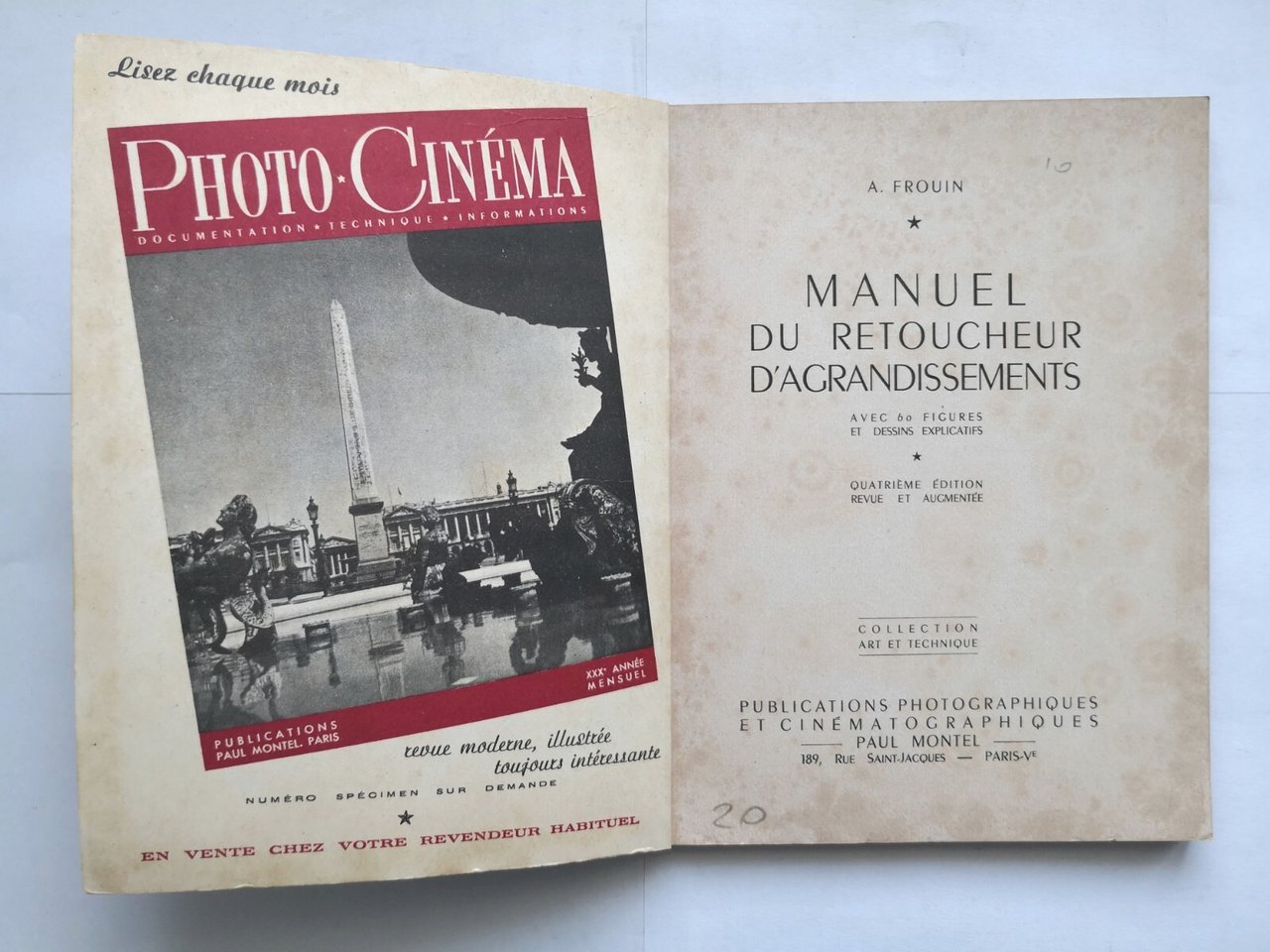 MANUEL DU RETOUCHEUR D'AGRANDISSEMENTS di Frouin 1951 Paul Montel libro foto