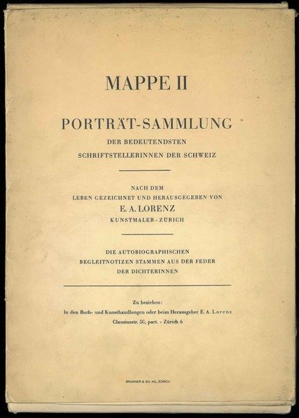 Mappe II. Portrat-Sammlung der bedeutendsten schriftstellerinnen der schweiz. Die autobiographischen begleitnotizen stammen aus der feder der dichterinnen.