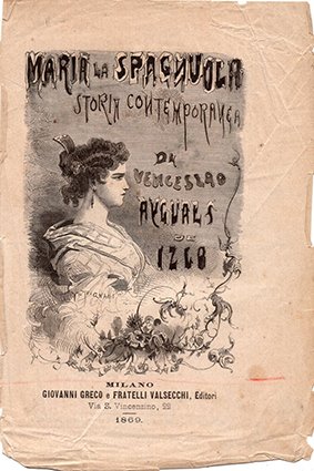 Introduzione di Eugenio Sue. Conservata pagina con disegno di copertina ma inicata come 1869.Alcune pagine staccate. Numerose immagini nel testo