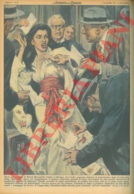 Maria Meneghini circondata da otto uscieri incaricati di notificarle un atto di citazione. Accorsero in sua difesa amici e compagni di lavoro e l'aggredita, liberatasi dalla stretta di uno, poté rientrare nel suo camerino.