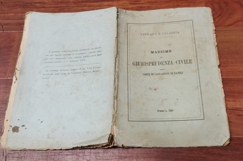 MASSIME DI GIURISPRUDENZA CIVILE DELLA CORTE DI CASSAZIONE DI NAPOLI SOLO LA PARTE II DEL 1878 di Ferrara e Calabria.