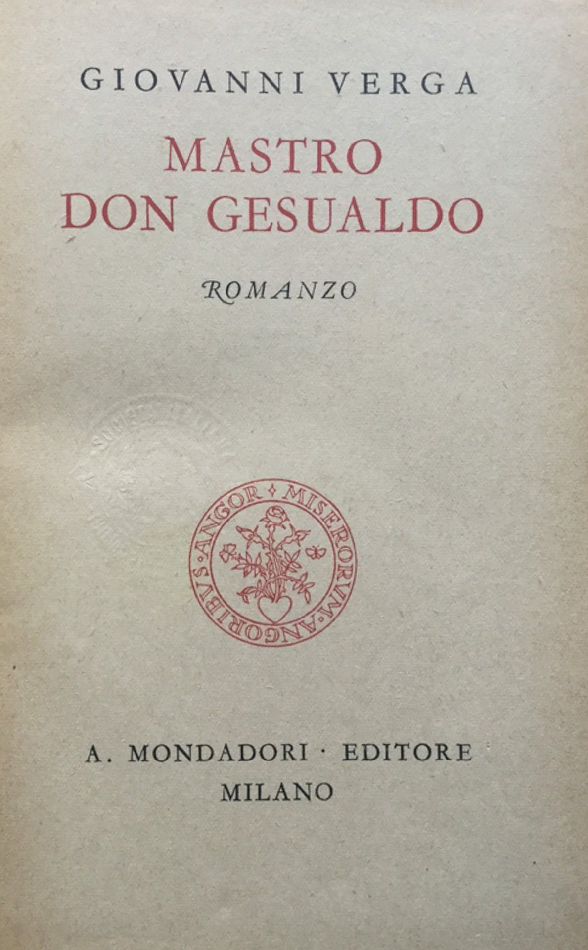 Leg. edit.- 383 pp., 19 cm. Coll.: Le opere di Giovanni Verga. Cond.: quasi ottimo 16 Ottimo (Fine) Ottimo