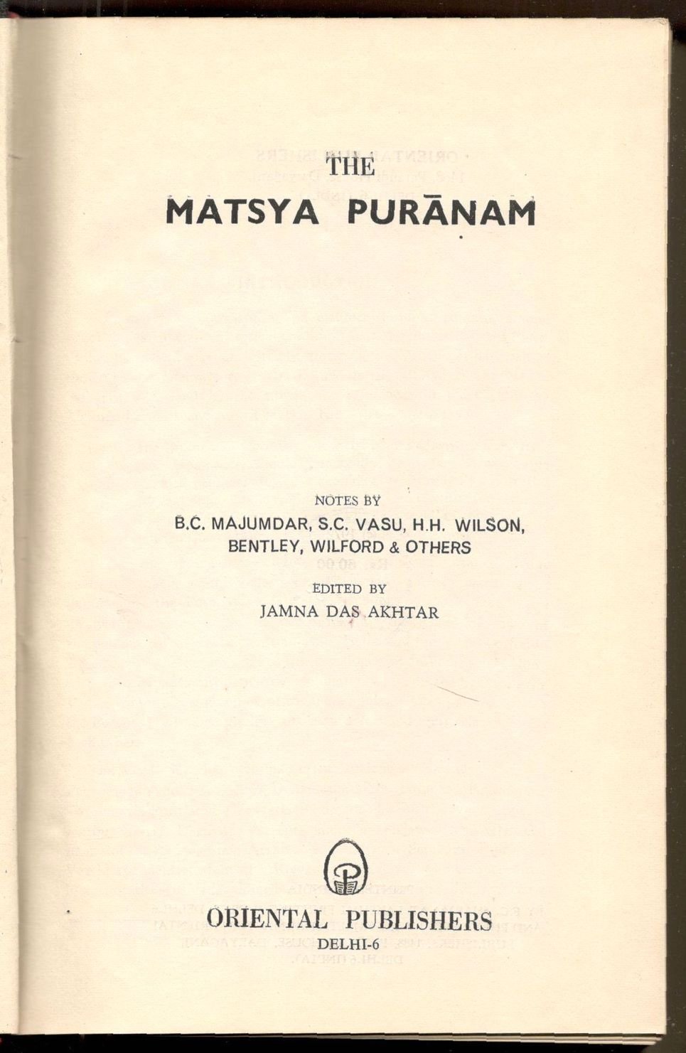 Matsya Puranam | Libri antichi e moderni | Akhtar, Jamna Das(Editor)