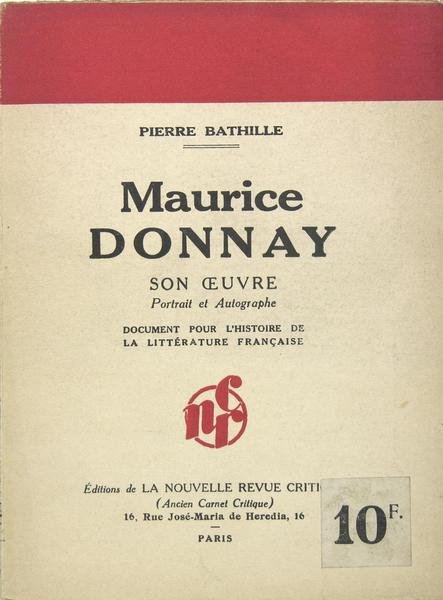Edition de la nouvelle revue, Paris, 1931. Petit in/8 broché, frontispice et autographe, 84 pages. Charles Maurice Donnay, né à Paris le 12 octobre 1859 et mort le 31 mars 1945, est un auteur dramatique français ; élu à l’Académie Française en 1907.