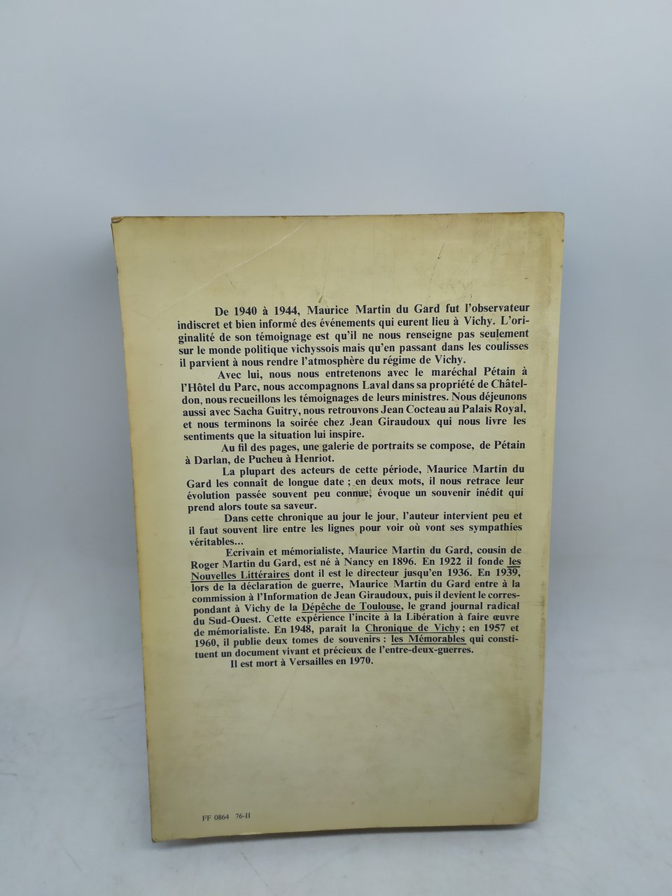 maurice martin du gard la chronique de vichy 1940 1944 flammarion . , 1975 french, pp.394 ^^