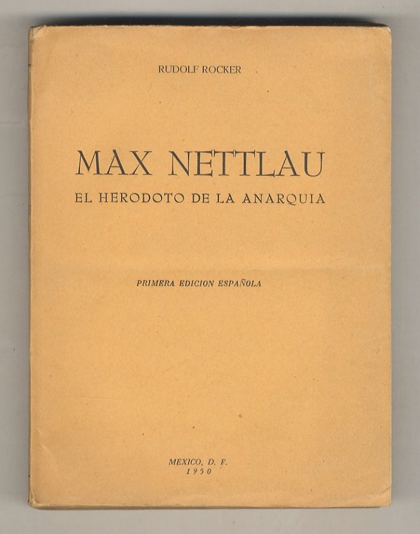 Mexico, D.F, "Ediciones Estela", 1950, in-8, br. editoriale, pp. [8], 315, [3]. Con un ritratto fotografico di Nettlau f.t. Conservata parzialmente una fascetta editoriale con testo in bianco su sfondo blu. Ottimo esemplare.