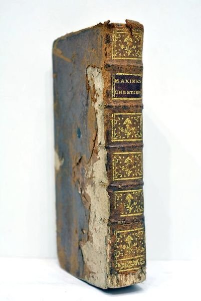 395 pages. (17,5x10cm). Pleine basane. Dos à nerfs orné. Pièce de titre. Reliure très abîmée avec manques importantes sur le plat inférieur. Quelques épidermures. Dos frotté. Accidents aux coiffes. Bon état intérieur.