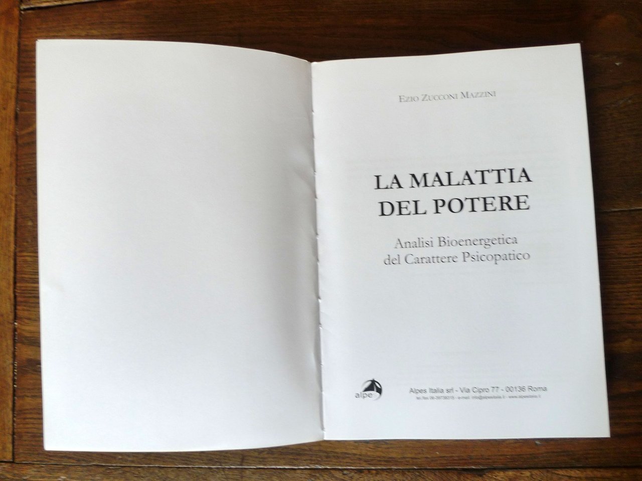 Ezio Zucconi Mazzini,LA MALATTIA DEL POTERE.ANALISI BIOENERGETICA DEL CARATTEREPSICOPATICO.Alpes Italia, Roma 2010, prima edizione,brossura, 24x17 cm., pp.XII-284,collana LA MALATTIA DEL POTERE,ISBN: 978-88-89923-93-1,peso: g.650cod.9498CONDIZIONI DEL LIBRO: come nuovo