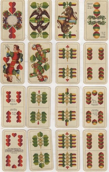 Mazzo di carte da gioco COMPLETO consistente di 36 carte da gioco (per ciascun seme: asso, 6, 7, 8, 9, 10, fante, cavaliere, re).