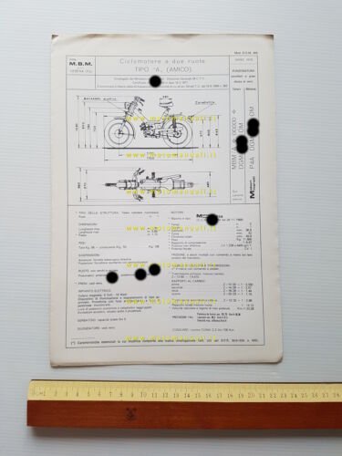 MBM 50 Amico tubone 1976 scheda omologazione DGM Facsimile originale