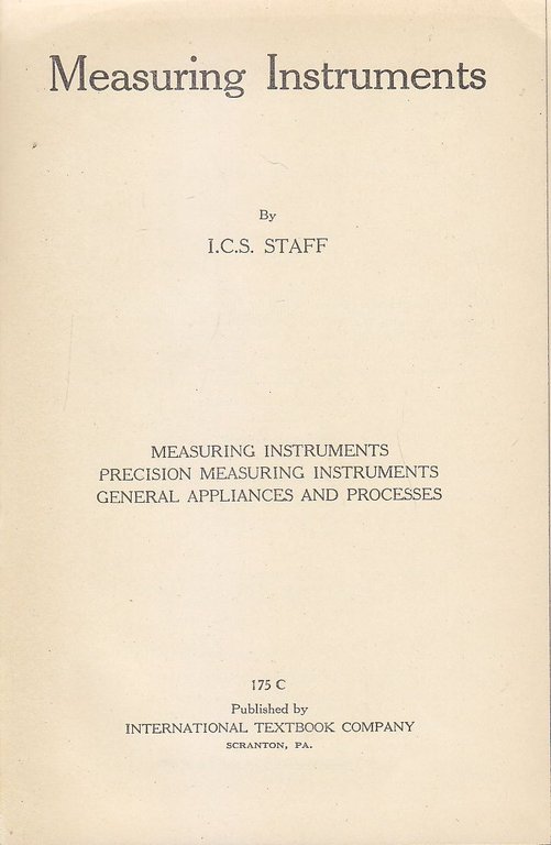 MEASURING INSTRUMETS di Staff 1939International textbook editore libro manuale