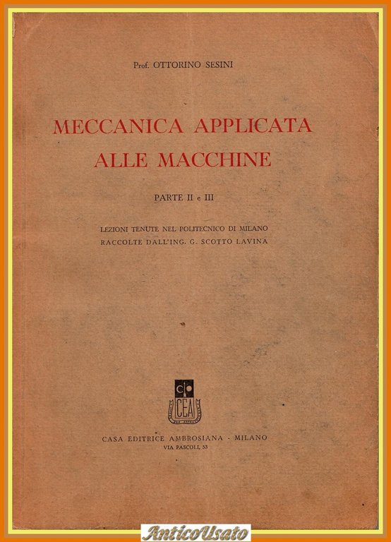 MECCANICA APPLICATA ALLE MACCHINE PARTE 2 e 3 di O Sesini 1948 Ambrosiana Libro