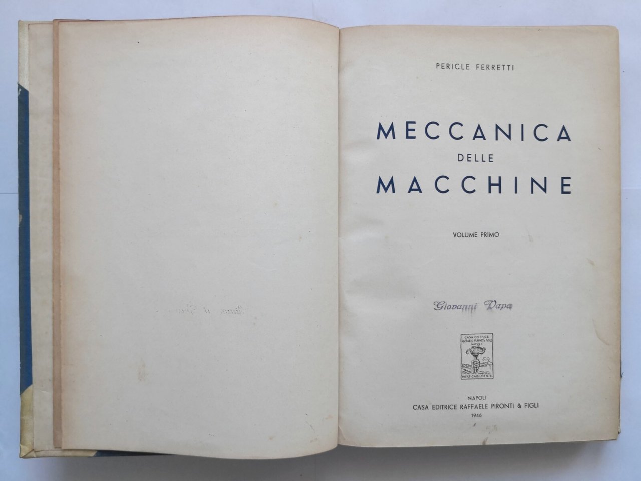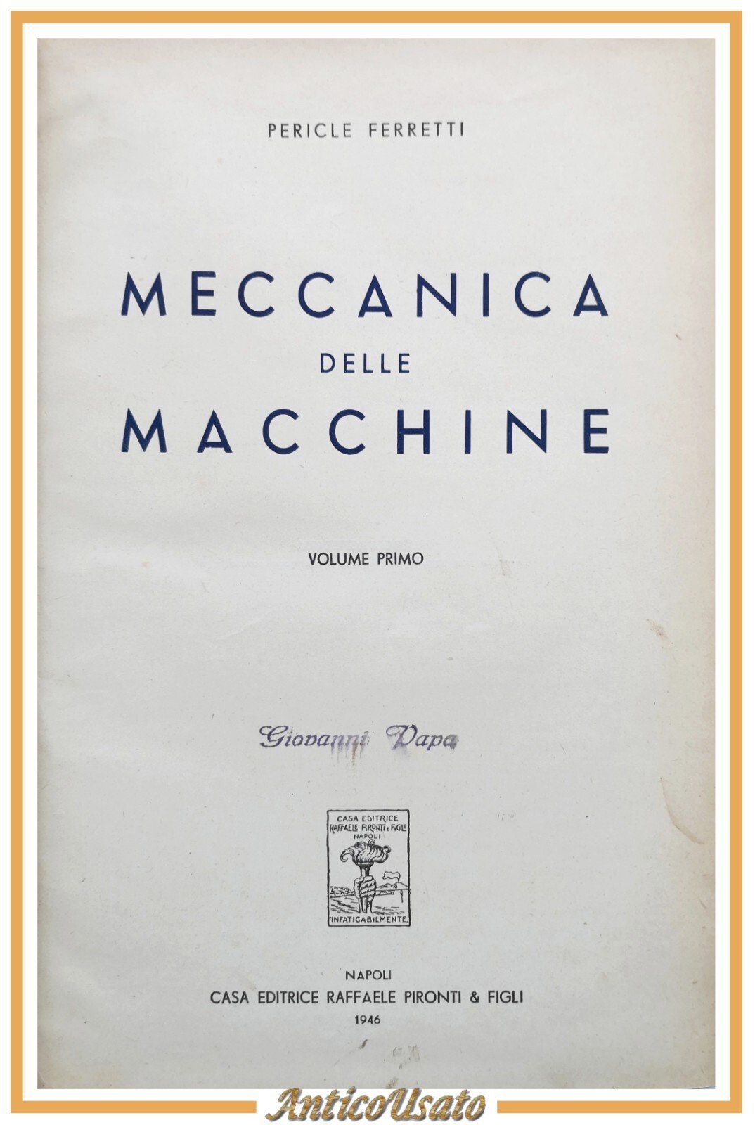 MECCANICA DELLE MACCHINE Volume 1 di Pericle Ferretti I 1946 Pironti Libro