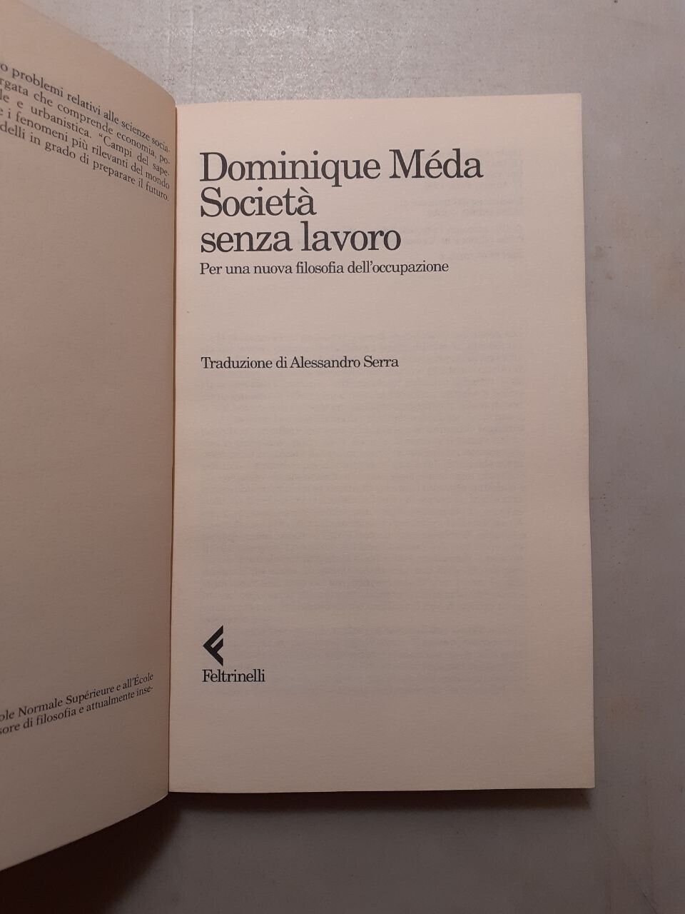 Méda,SOCIETA’ SENZA LAVORO.Per una nuova filosofia dell’occupazione,1991