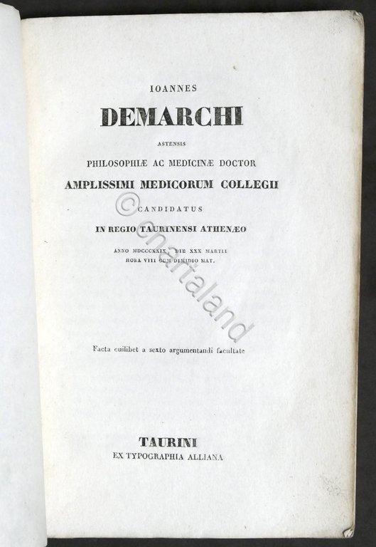Medicina - Ioannes Demarchi Astensis philosophiae ac medicinae - 1^ ed. 1829