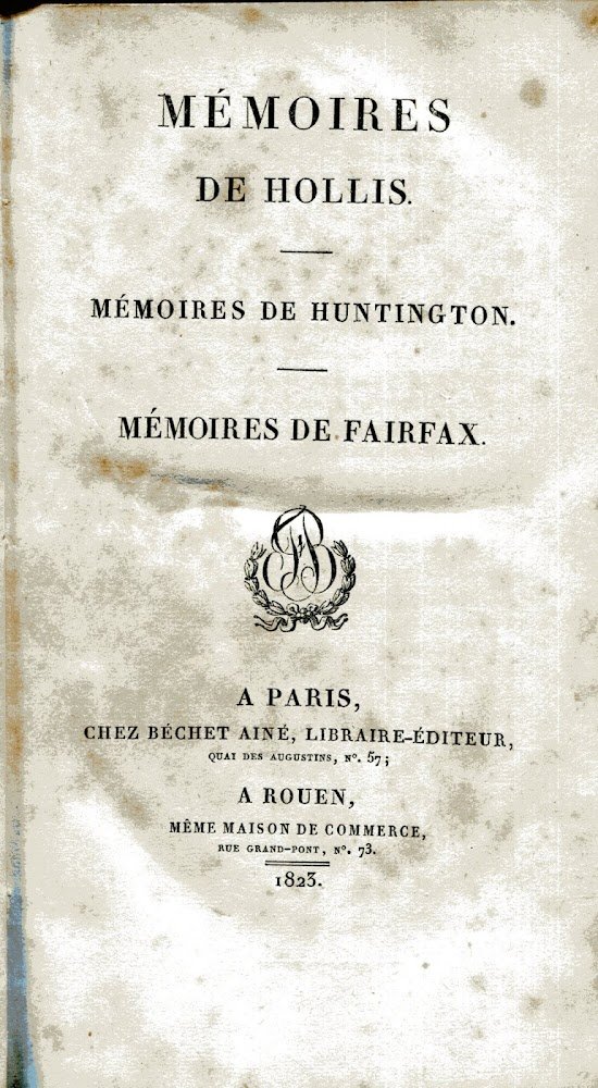 Mémoires de Hollis. Mémoires de Huntington. Mémoires de Fairfax. Collection des mémoires relatifs à la révolution d'Angleterre