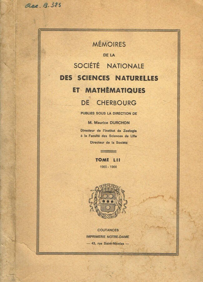 Mémoires de la Société Nationale des sciences naturelles et mathématiques de Cherbourg. Tome LII, 1965-1966