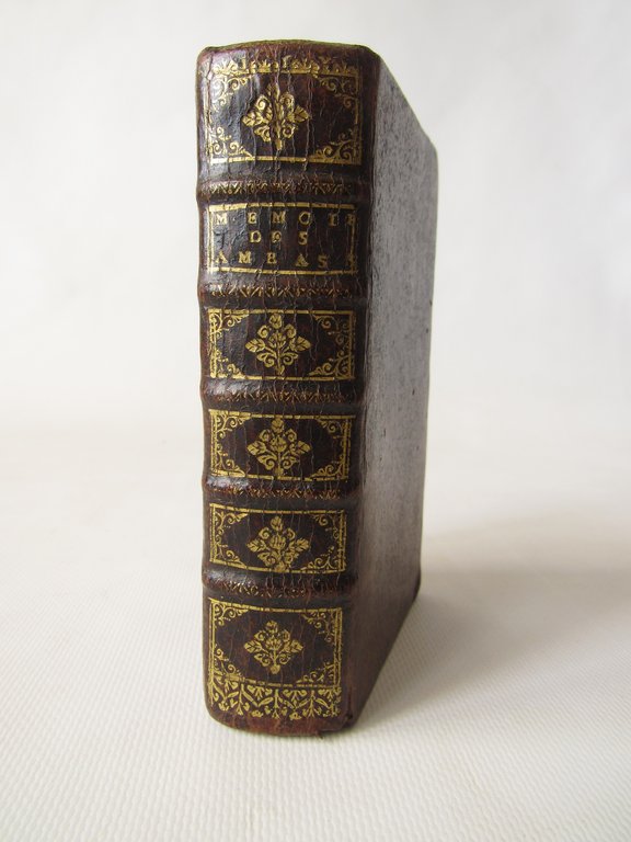 Chez Pierre du Marteau | à Cologne 1677 | 8.50 x 14 cm | relié | [ENGLISH DESCRIPTION ON DEMAND] | Edition originale, sous initiales L.M.P. pour le ministre prisonnier. Page de titre à la sphère. Reliure en pleine basane brune marbrée d'époque. Dos à nerfs orné. Pièce de titre de basane brune. Un léger manque en queue. Un coin émoussé. Bon exemplaire, parfaitement frais. Dans ses mémoires rédigées en Hollande où il a trouvé refuge, Wicquefort, diplomate et intellectuel, prend la plume pour se défendre des accusations de haute trahison qui lui ont valu une condamnation d'emprisonnement à perpétuité. Célèbre diplomate, d'abord au service de Mazarin, puis embastillé pour un écrit sur les relations su jeune Louis XIV avec la nièce de Mazarin, il trouve refuge en Hollande où il informera la France des agissements des diplomates et amassadeurs étrangers. En 1675 surgit l'Affaire Williamson : Wicquefort est accusé de haute trahison après avoir vendu des dépêches secrètes à l'ambassadeur de la Couronne d'Angleterre, le chevalier Williamson. Il est arrêté le 25 mars et conduit en prison. En 1676, il est condamné à la prison perpétuelle après un procès retentissant et à la confiscation de ses biens. C'est durant son séjour en prison qu'il rédige ces mémoires sur les diplomates, les ministres, les amassadeurs et le droit en Europe. Wicquefort parviendra à séchapper de prison en 1679.