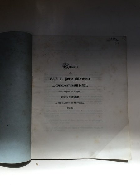 Memoria della città di Porto Maurizio al consiglio divisionale di Nizza sulla proposta di designare Porto Maurizio a capo luogo di provincia.