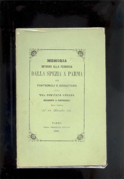 MEMORIA INTORNO ALLA FERROVIA DALLA SPEZIA A PARMA PER PONTREMOLI E BORGOTARO<BR>LETTA NEL COMITATO LUNENSE RESIDENTE A PONTREMOLI NELLA TORNATA DEL 22 SETTEMBRE 1860