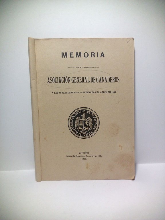 Memoria presentada por la Presidencia de la Asociación General de Ganaderos a las Juntas Generales celebradas en abril de 1908