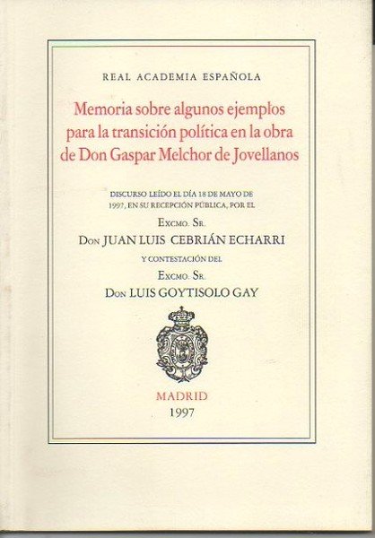 MEMORIA SOBRE ALGUNOS EJEMPLOS PARA LA TRANSICION POLITICA EN LA OBRA DE DON GASPAR MELCHOR DE JOVELLANOS. DISCURSO LEIDO EL DÍA 18 DE MAYO DE 1997.