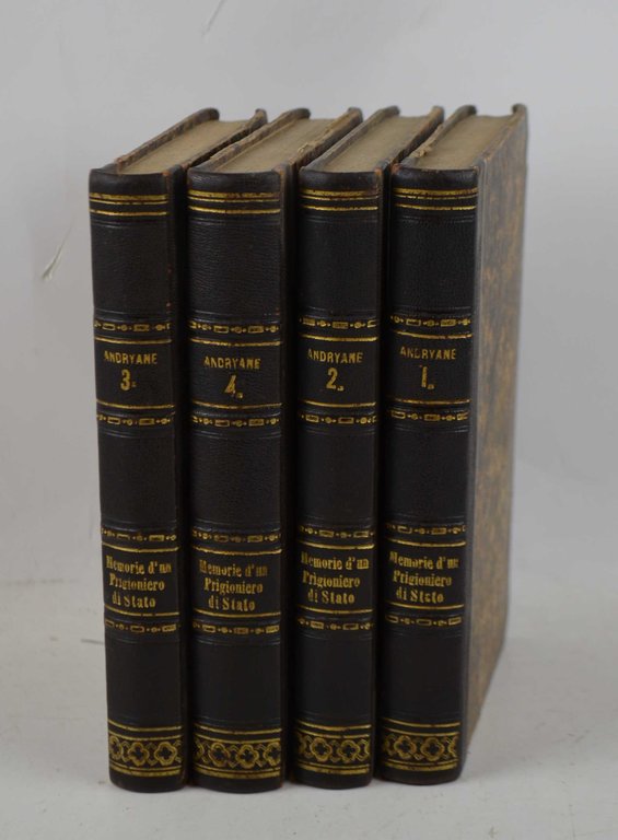 Quattro volumi di cm. 17,5, pp. xvi, 303 (5); 302; 31; 408. Con un ritratto inciso in rame all'antiporta di ciascun volume. Legatura coeva in mezza pelle, dorsi a nervi con titoli e fregi in oro. Qualche fioritura sparsa, peraltro esemplare genuino ed in buono stato di conservazione.