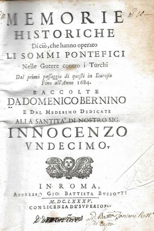 Memorie historiche di ciò che hanno operato lo sommi Pontefici, nelle Guerre contro i Turchi. Dal primo passaggio di questi in Europa Fino all'anno 1684.