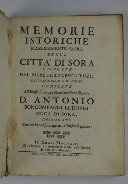 Memorie istoriche massimamente sacre della città di Sora…