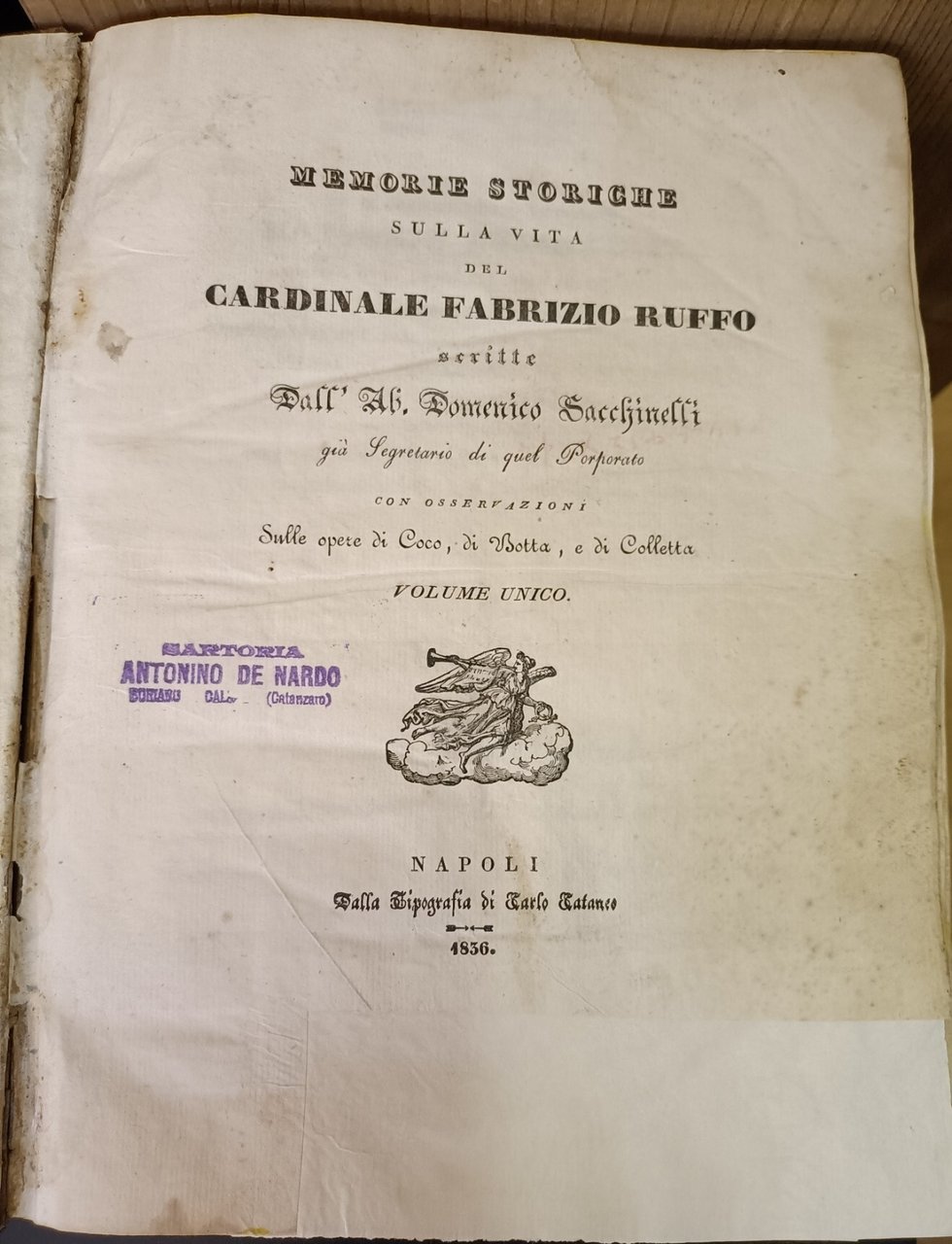 Memorie storiche sulla vita del cardinale Fabrizio Ruffo scritte dall'ab. Domenico Sacchinelli con osservazioni sulle opere di Coco, di Botta, e di Colletta. Volume unico | Libri antichi e moderni | Sacchinelli, Domenico, ,Sacchinelli, Domenico
