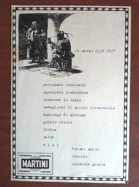 Menù originale 1938 Martini firmato dai commensali - E14639